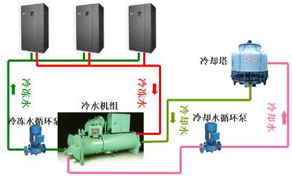 The chilled water system is mainly composed of a chiller, a cooling tower, a chilled water pump, a cooling water pump, and a chilled water type air conditioner end. The system adopts centralized cold source, the cooling efficiency of the chiller is high, and the cooling tower is placed in a flexible position, which can effectively control the noise and benefit the aesthetic appearance of the building. After reaching a certain scale, it has more construction cost and maintenance cost than the direct evaporative system. Economic advantage.