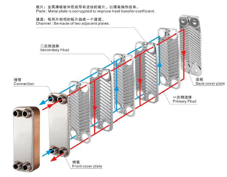用水量少:釬焊式板式熱交換器換熱效率高,使其在同一冷卻工況下只需要相當(dāng)于管殼式熱交換器1/3的冷卻水流量。